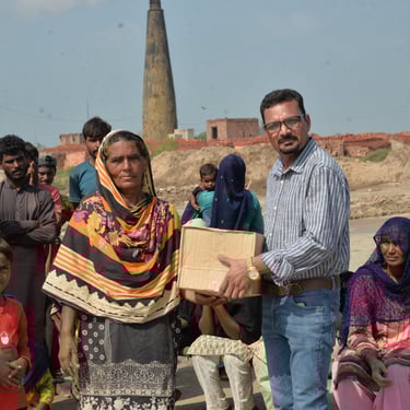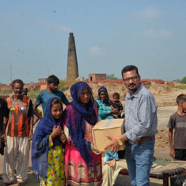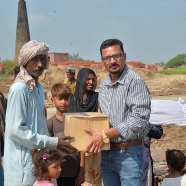 In backward area of Bricklin 21 families who work there, unfortunately in this rainy season they didn't get paid well. They were not able to manage their monthly expenses well. Even they won't be able to buy groceries for their families. So, our Foundation Manage to raise funds for them and all by the grace God, by the start of this September our Foundation have distributed grocery packages to the 21 Families In backward area of Bricklin in Faisalabad, Pakistan.